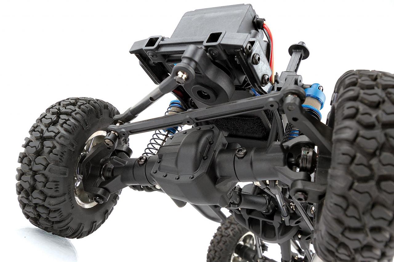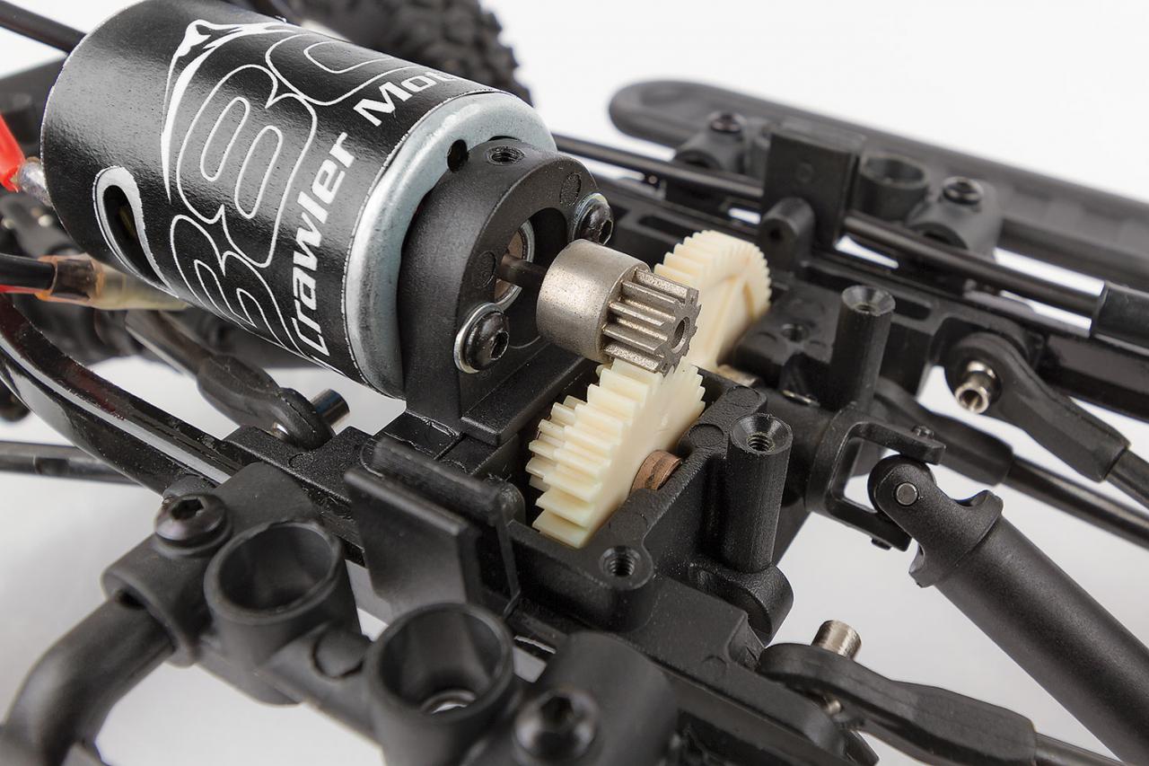 Designed not only for scale looks with realistic wheels and tires, the CR12 is built for performance as well. The steel ladder frame chassis provides the perfect backbone for this rugged little rig. The 4-link suspension, threaded shocks, and soft rubber tires give the grip and performance needed to climb over the roughest terrain. Transferring power to the rocks is a compact 3-gear transmission, front steel CVA axles, and includes metal-shield ball bearings.