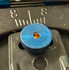 Meant to replace the screw & washer closest to the degree markings on Custom Works adjustable arm kits. We suggest to have the outer arm pivot screw snug, and loosen the thumb screw to make toe adjustments. Tighten the thumb screw after the adjustment is made. Choose between Silver or Blue.