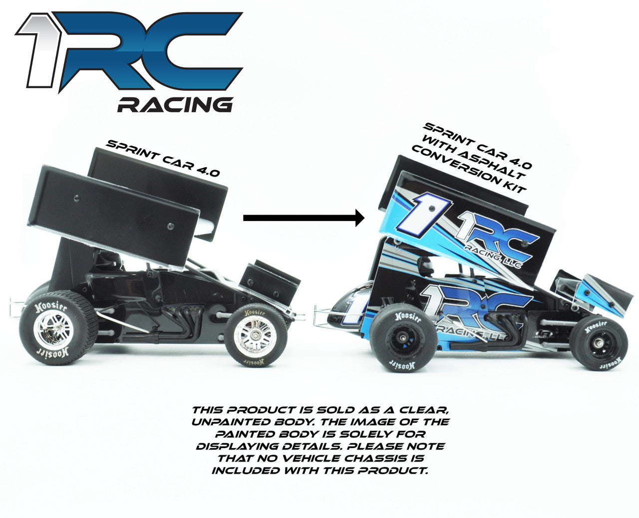 Important Note - This ONLY is a conversion kit. A 1RC Racing 1/18 Sprint Car (1RC1095, 1RC1096, or 1RC1097) is required to complete this conversion kit.