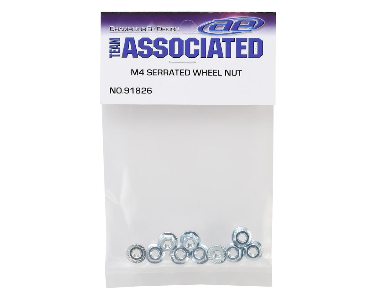 This is a pack of ten Team Associated M4 Serrated Wheel Nuts.