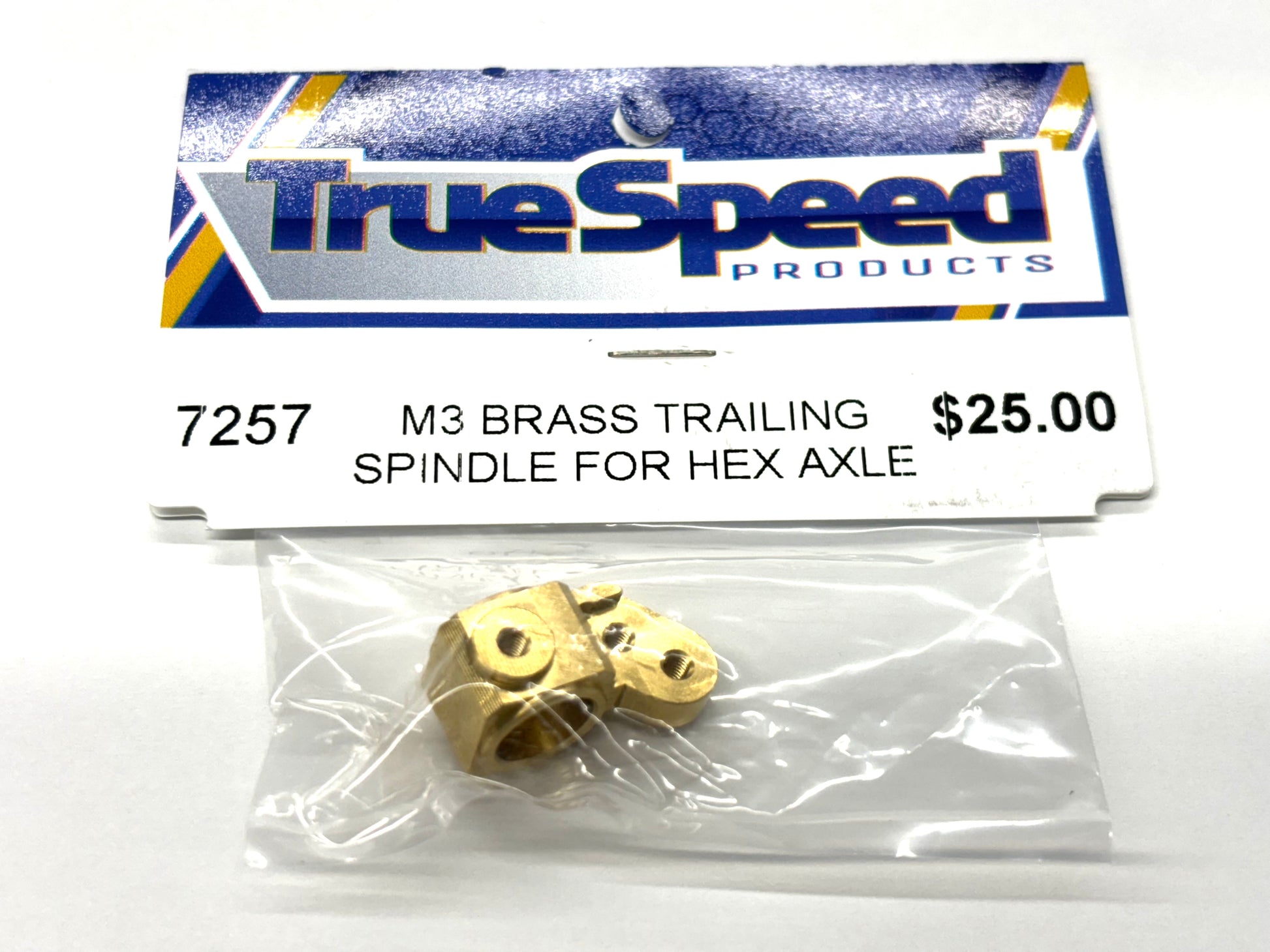 Custom Works RC / TrueSpeed M3 Brass Trailing Front Spindle for Hex Axle, CW-7257