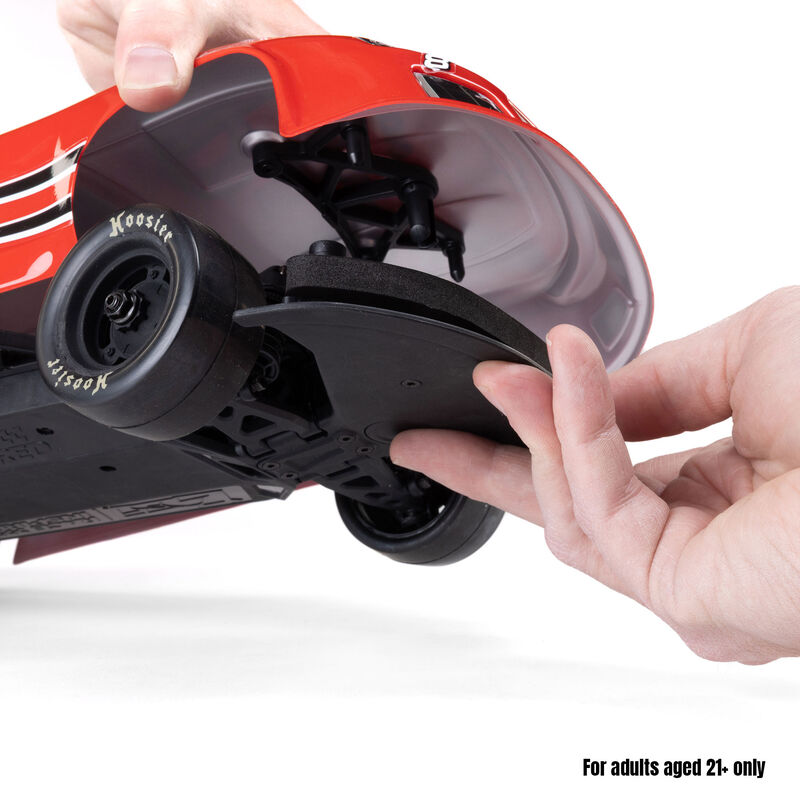 The Losi Asphalt Late Model GROM is a hobby-quality RC race car engineered for racers who want authentic performance. With its clipless body mounting system, officially licensed GM body design, Wide 5 racing wheels, and Hoosier asphalt short track tires, this is a machine built to deliver the short track experience you crave. The elongated hood provides increased downforce for a planted feel through the corners just like the real thing.