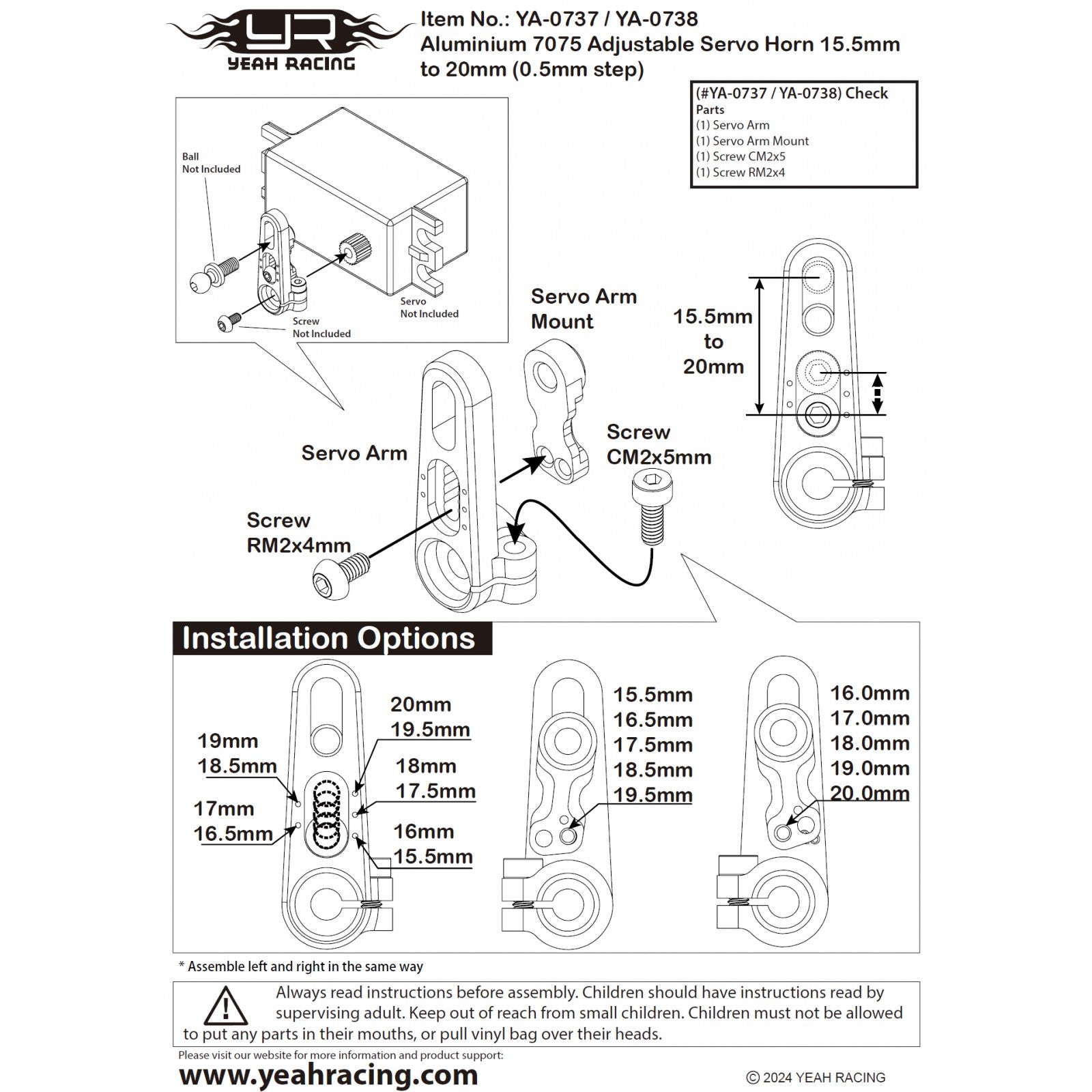 Yeah Racing 25T Aluminum 7075 Adjustable Servo Horn 15.5mm to 20mm (0.5mm step)
